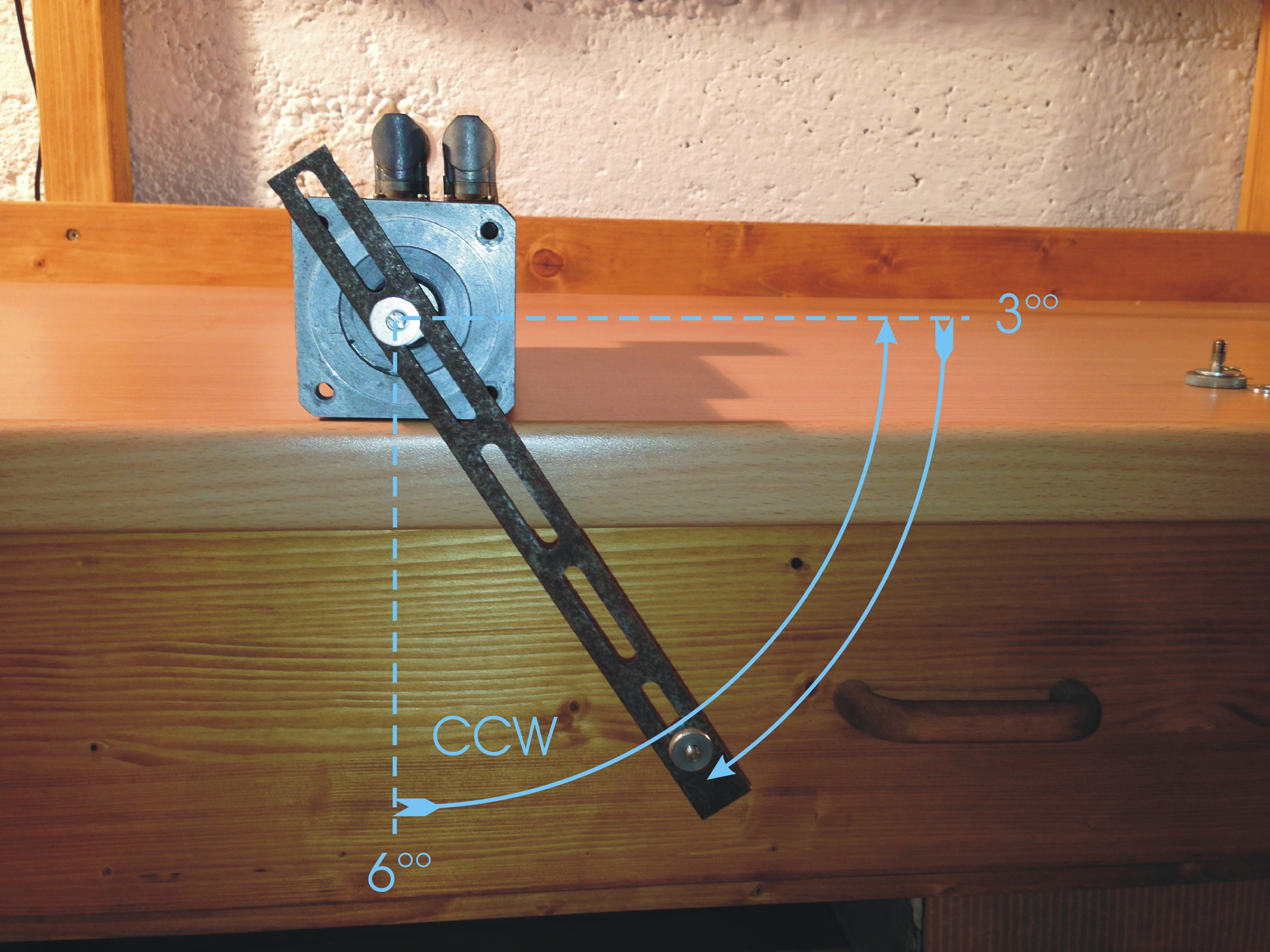 Startet man aus der 6°° Uhr Position und bewegt den Zeiger CCW auf die 3°° Uhr Position und lässt den Zeiger los, dann fällt der Zeiger nach unten: